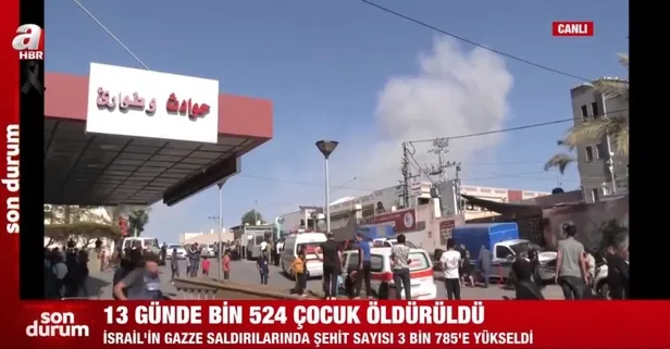 Hastanen yakınının vurulduğu canlı görüntüleri A Haber ekrana getirdi. Gazze'de Han Yunus Hastanesi'nin olduğu yerde dumanlar yükseldi.