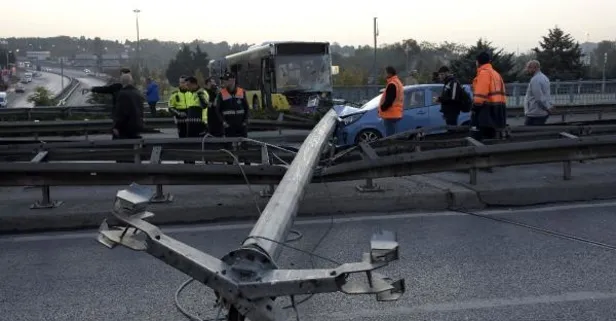 Edinilen bilgiye göre; şoförünün direksiyon hakimiyetini kaybetmesiyle yoldan çıkan İETT otobüsü, demir bariyerlere ve aydınlatma direğine çarptı.