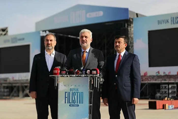 İsrail'in saldırılarına dikkat çekmek ve özgür Filistin davasına destek amacıyla gerçekleştirilecek mitingle ilgili AK Parti Genel Başkan Yardımcıları Hamza Dağ ve Mustafa Şen ile AK Parti İstanbul İl Başkanı Osman Nuri Kabaktepe basın toplantısı düzenledi.