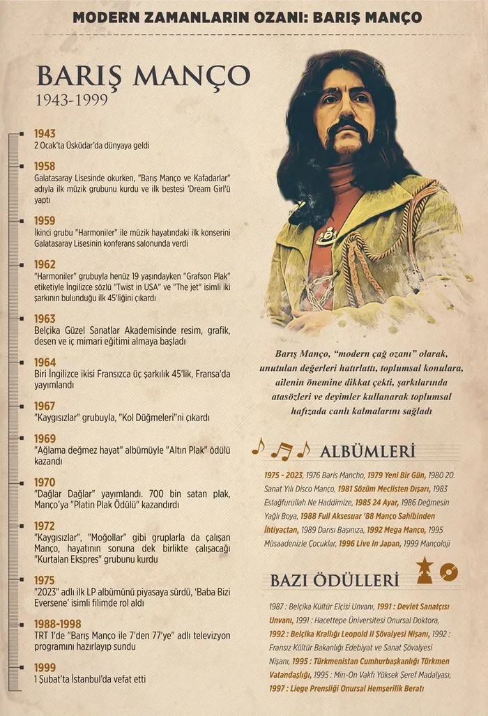 Başkan Recep Tayyip Erdoğan, 2023 Cumhurbaşkanlığı Kültür ve Sanat Büyük Ödülü'ne layık görülen sanatçıları açıkladı. Erdoğan, vefa ödülü verilen Atilla İlhan, Barış Manço, İsmail Hakkı Uzunçarşılı, Muhsin Ertuğrul ve Samiha Ayverdi için "Vefa ödülü sahibi insanlarımıza Allah’tan rahmet diliyorum" ifadelerini kullandı. Takvim.com.tr detayları sizler için derledi.