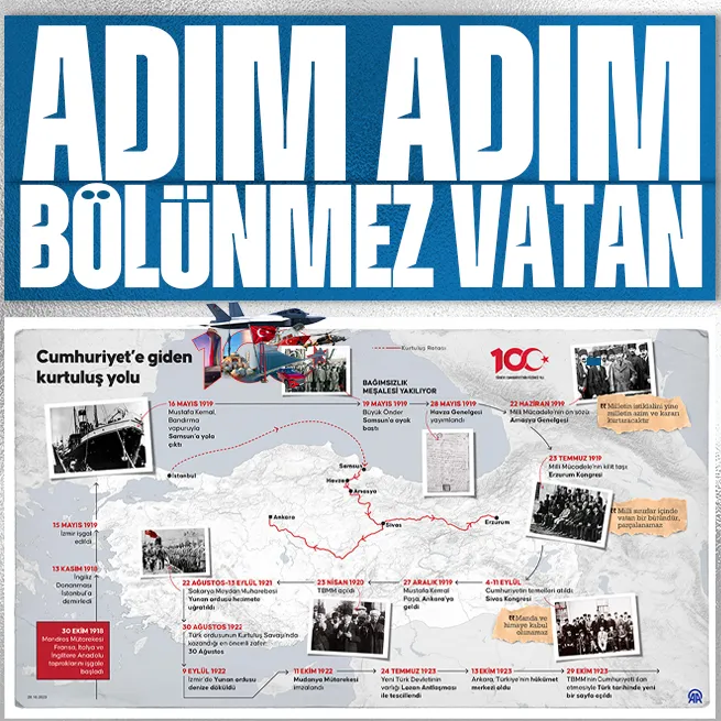 MSB'nin sosyal medya hesabından Cumuhuriyet'in 100'üncü yıl dönümünün kutlandığı mesajda, Cumhuriyet'in kurucusu Başkomutan Gazi Mustafa Kemal Atatürk ve Milli Mücadele'nin tüm kahramanları rahmet, minnet ve saygıyla anıldı.