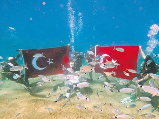 Cumhuriyet'in 100. Yılı, denizde de kutlandı. Dalgıçlar, mavi sularda Türk bayrağı açtı.