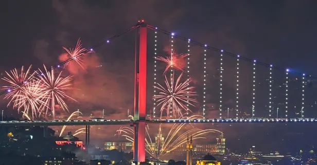 İstanbul Boğazı'nda düzenlenen drone, havai fişek ve ışık gösterisi nefesleri kesti.