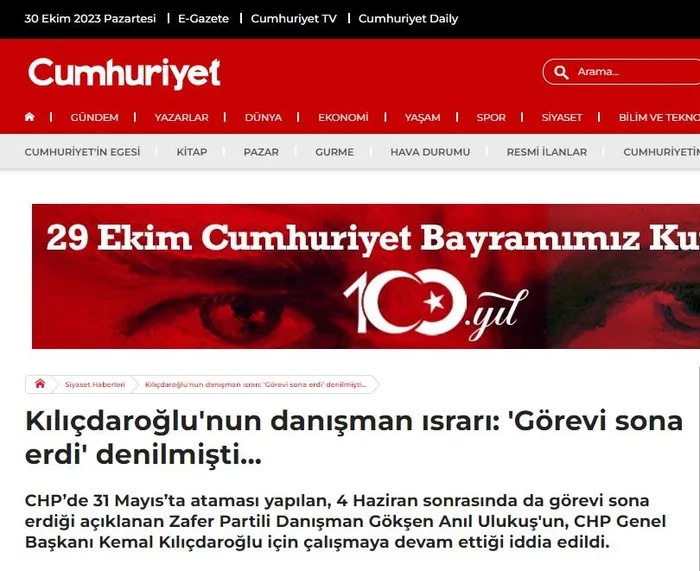 CHP yandaşı Cumhuriyet gazetesi haberi, "Kılıçdaroğlu'nun danışman ısrarı: 'Görevi sona erdi' denilmişti..." başlığıyla okuyuculuların duyurdu.