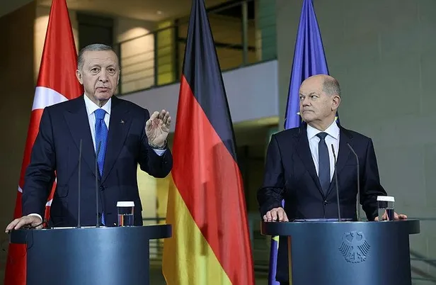 Steinmeier'in ardından Almanya Başbakanı Olaf Scholz ile düzenlenen ortak basın toplantısında konuşan Başkan Erdoğan 2009'da Davos'ta yaptığı "One minute" çıkışının ardından tarihe damga vuran bir konuşmaya daha imza attı.