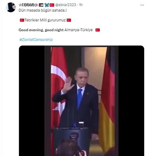 Geçtiğimiz gün Başkan Erdoğan, Almanya'da dünyanın gözü önünde İsrail soykırımına arka çıkan Olaf Scholz’u yerin dibine sokmuş, gazetecilerin soruları bittikten sonra ise kulaklığını çıkaran Erdoğan, toplantı sonunda "Good evening, good night" diyerek salondan ayrılmıştı. Bizim Çocuklar'ın özel maçta Almanya'yı Berlin'de eze eze mağlup etmesinin ardından ise sosyal medya yıkıldı. Kullanıcılar 'Hem masada hem sahada' yorumları yaptı. İşte o paylaşımlar.