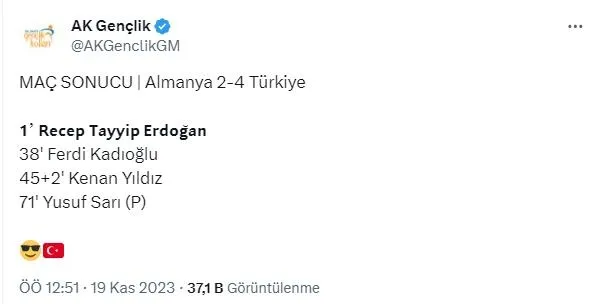 AK Gençlik ise sosyal medya hesabından paylaşımda bulundu.