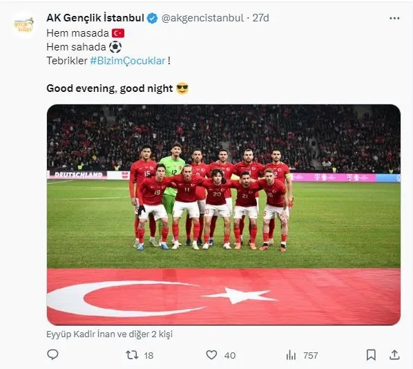 AK Gençlik İstanbul hesabından da, "Hem masada, Hem sahada. Tebrikler #BizimÇocuklar" paylaşımında bulundu.