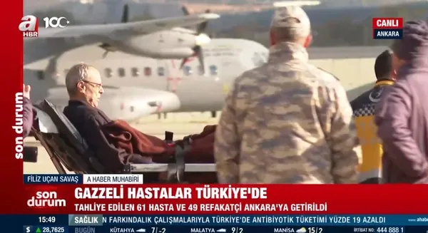 Mısır'ın El Ariş Havalimanı'ndan kalkan Milli Savunma Bakanlığına ait A400M uçağı 61 hasta, 49 refakatçi ve 10 sağlık personeliyle saat 15.10'da Etimesgut Askeri Havaalanı'na iniş yaptı.