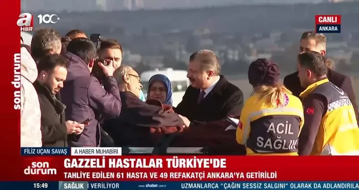 Sağlık Bakanı Fahrettin Koca, Mısır'dan Türkiye'ye getirilen Gazzeli 61 hastanın tedavisinin Bilkent ve Etlik şehir hastanelerinde yapılacağını bildirdi.