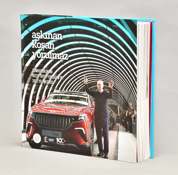 "Ömrünü milletine adayan, milletine sevdalı liderimiz Cumhurbaşkanımız Sayın Recep Tayyip Erdoğan'ın 4 yıllık tüm mesaisini kitaplaştırdık. Sayın Cumhurbaşkanımızın milletine hizmet sevdasıyla yaptığı tüm çalışmaları vatandaşlarımızın istifadesine sunduk. Yıllardır bu aziz milletin hayalini kurduğu tüm projeleri, çalışmaları hayata geçiren ve Cumhuriyetimizin 100. yılında Türkiye Yüzyılı'nı başlatan Sayın Cumhurbaşkanımız geleceğimiz için de dev bir adım attı. Sayın Cumhurbaşkanımız Türkiye Yüzyılı'nın özünü milletimizin iradesinden alan sağlam bir temel üzerine inşa edileceğini aziz milletimize göstermiştir. İnşallah milletimizin verdiği en güçlü destek ve güvenle de Türkiye geleceğe emin adımlarla yürümeye devam edecek. Bizler de 'Aşkınan koşan yorulmaz' şiarıyla Sayın Cumhurbaşkanımızın liderliğinde var gücümüzle çalışmayı sürdüreceğiz."