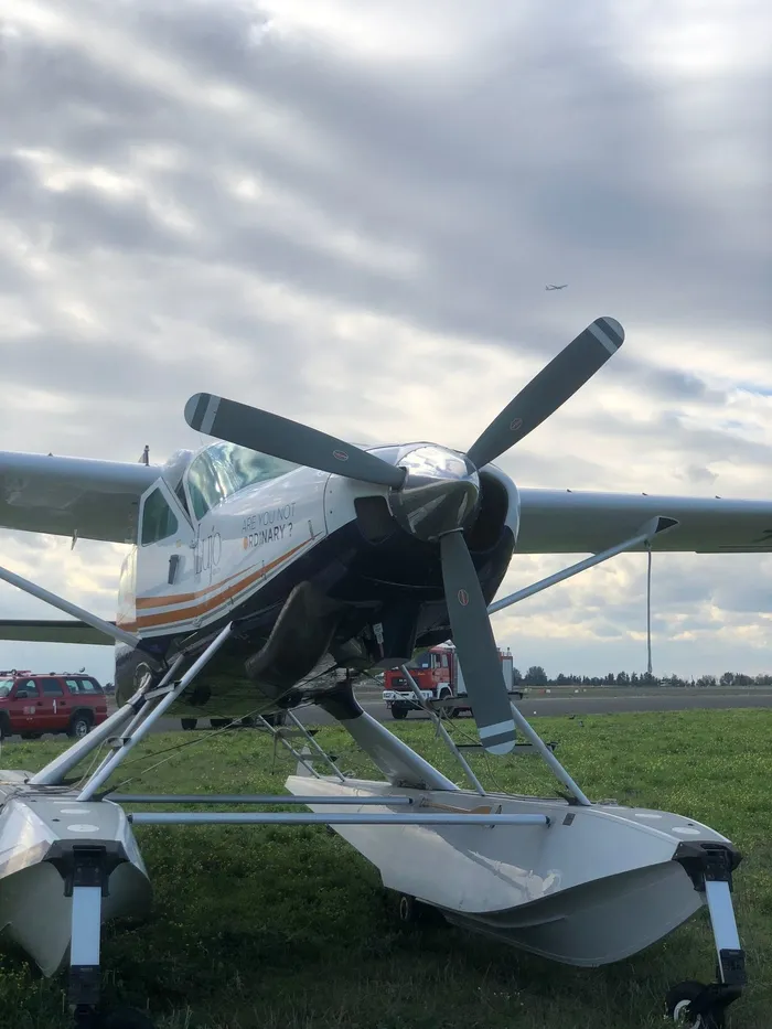 Kaza sonrası uçakta bulunan iki pilot kazayı yara almadan atlatırken, yeşil alana çıkan uçak ekipler tarafından kurtarıldı.