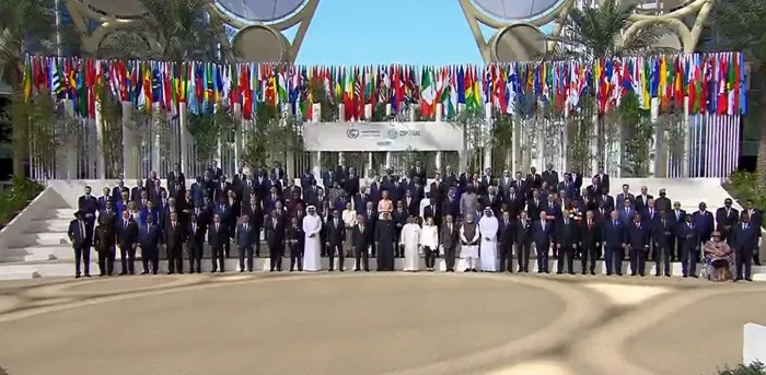 Dubai'de bulunan dünya liderleri daha sonrasında aile fotoğrafı için aynı kareye girdi.