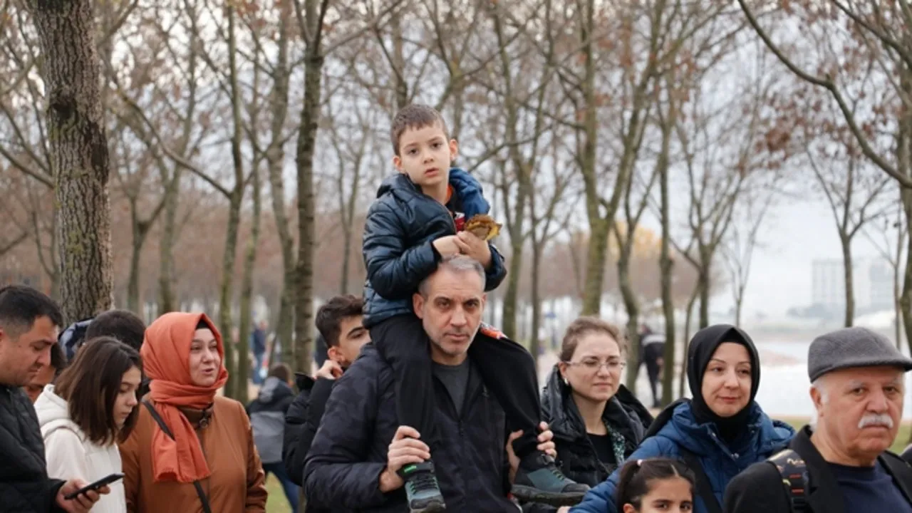 Gemiyi görmek için bekleyenler daha sonra 1 Mart Vapur İskelesi'nden bindikleri vapurlarla açıkta demirleyen TCG Anadolu'ya taşındı.