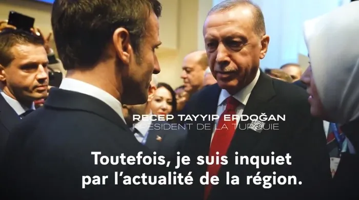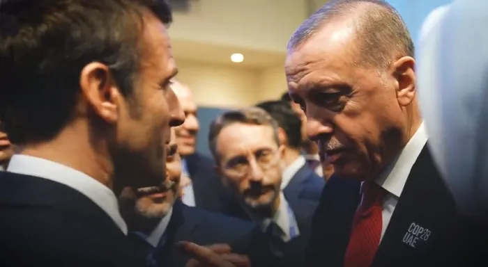 Fransa Cumhurbaşkanı Emmanuel Macron, Birleşmiş Milletler İklim Değişikliği Çerçeve Sözleşmesi 28. Taraflar Konferansı (COP 28) kapsamında Dubai'de bir araya geldiği Başkan Recep Tayyip Erdoğan ile gerçekleştirdiği ayaküstü sohbetin görüntüsünü, sosyal medyada paylaştı.