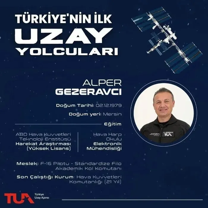 Kacır'ın paylaşımında, Türkiye'nin ilk uzay yolcusu Alper Gezeravcı, taşıyacağı uzay armasına ilişkin bilgi verdi. Gezeravcı, şunları kaydetti: