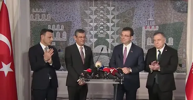 Herkes basın toplantısının bitmesini beklerken İmamoğlu'nun alkışlamayan Özel, ani bir hamleyle mikrofona yaklaştı ve, "Ben bir iki bir şey söyleyeyim" diyerek mikrofonu yeniden söz aldı.