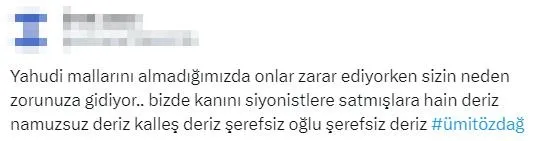 Bir vatandaş ise "Yahudi mallarını almadığımızda onlar zarar ediyorken sizin neden zorunuza gidiyor.. bizde kanını siyonistlere satmışlara hain deriz namuzsuz deriz kalleş deriz şerefsiz oğlu şerefsiz deriz ." ifadelerine yer verdi.