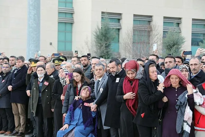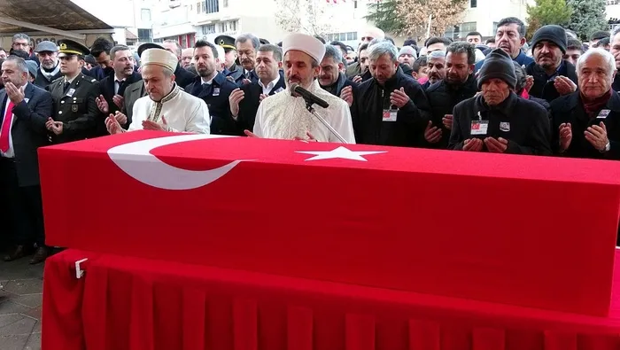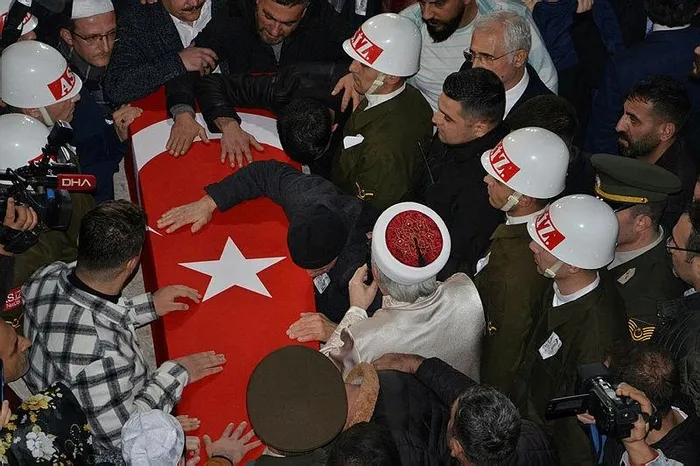 Şehit Piyade Uzman Çavuş Abdulkadir İyem'in Türk bayrağına sarılı tabutu havalimanında karşılanmasının ardından tören için Asri Mezarlıkta Bahaeddin Nakıboğlu Camisi'ne getirildi.