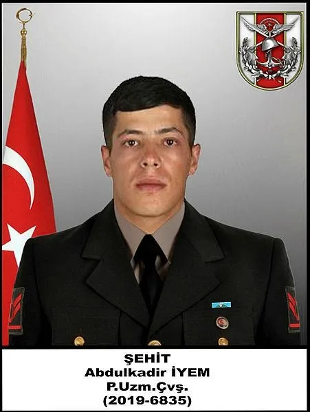 Şehit Abdulkadir İyem'in Türk bayrağına sarılı tabutuna kapanan şehidin anne, babası ve yakınları, uzun süre gözyaşı döktü. Şehidin babası Mehmet İyem, tabutun önünde bulunan oğlunun fotoğrafına sarılarak ağıt yaktı.