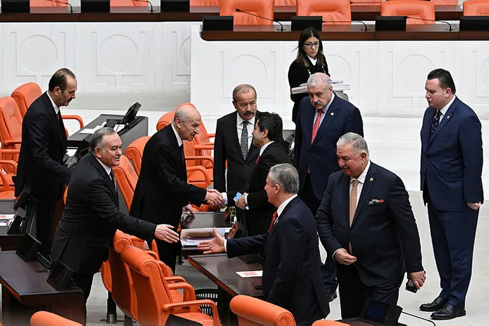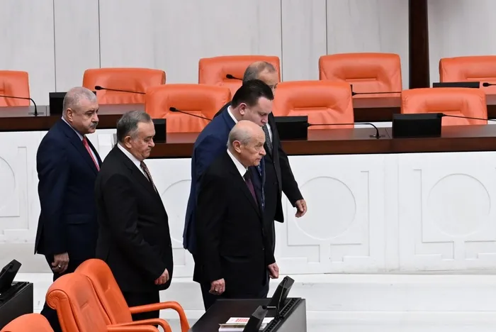 MHP Lideri ve milletvekilleri, PKK'nın siyasi ayağı DEM Parti (HDP) sözcüleri konuşurken salondan ayrıldı.
