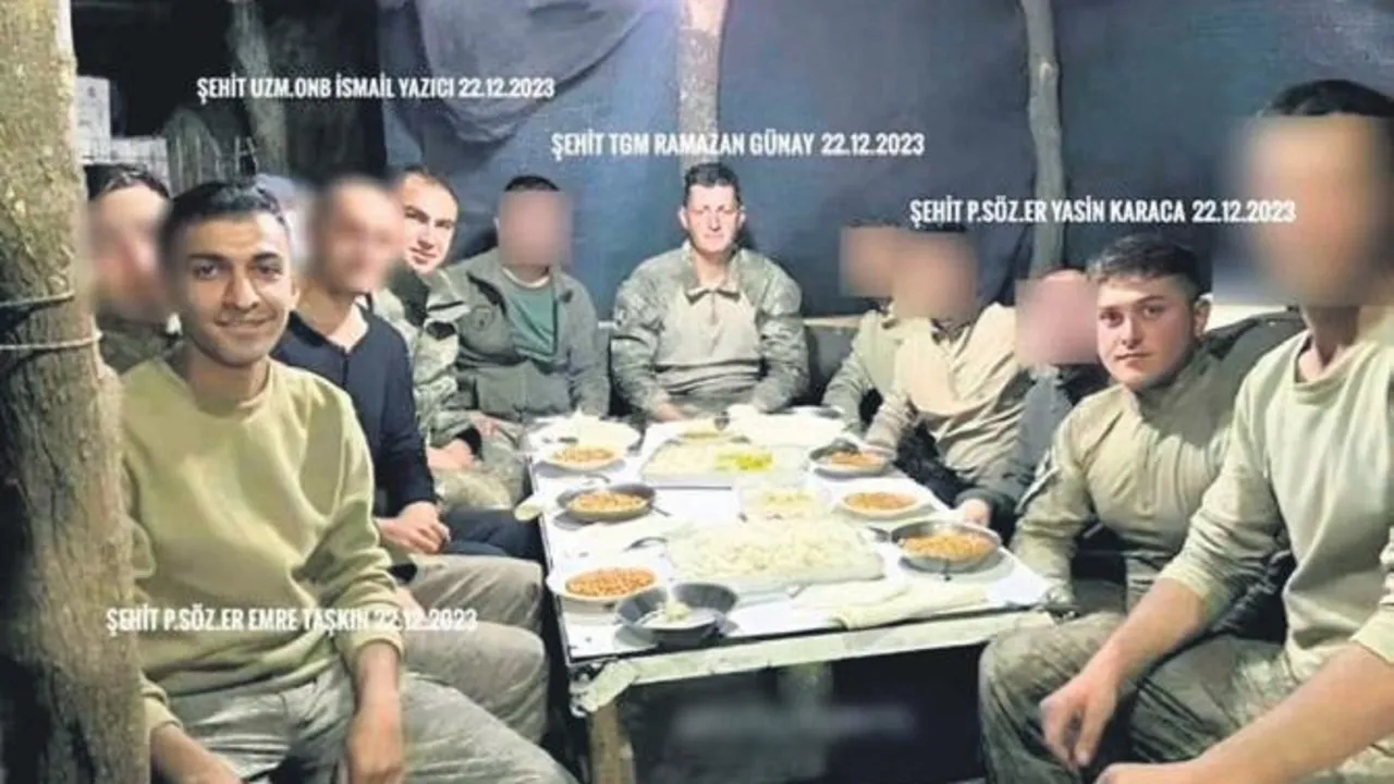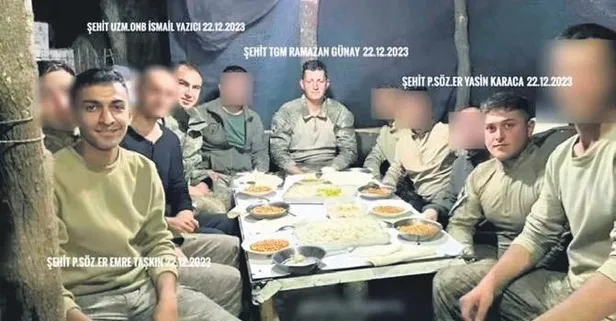 Yakın zamanda çekildiği anlaşılan fotoğrafta şehitler Teğmen Ramazan Günay, Piyade Uzman Onbaşı İsmail Yazıcı, Piyade Sözleşmeli Er Yasin Karaca ve Piyade Sözleşmeli Er Emre Taşkın'ın birlikte aynı sofrada yemek yedikleri görülüyor.