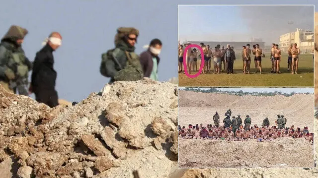 Yerel medya kanallarında ve sosyal medya hesaplarında paylaşılan görüntülerde, zorla yerlerinden edilen çok sayıda Filistinli sivilin, İsrail askerlerince alıkonulduğu ve Gazze'deki bir stadyumda yarı çıplak bir şekilde toplandığı görülüyor.