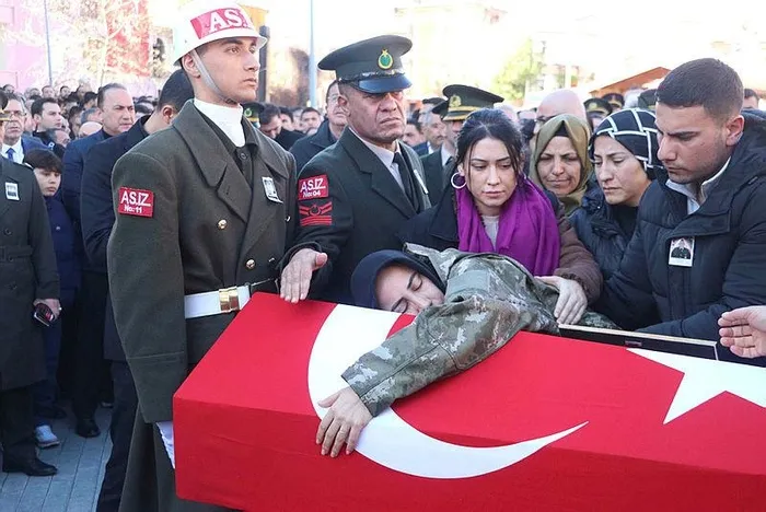 Ağabeyinin asker üniformasını giyen Yasemin Günay, tabutun üstüne subay kılıcı bıraktı.