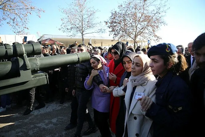 Şehidin kız kardeşi Büşra Serinkan, ağabeyinin üniformasıyla törene katılırken, aile üyeleri de şehidin naaşına sarılarak gözyaşı döktü.