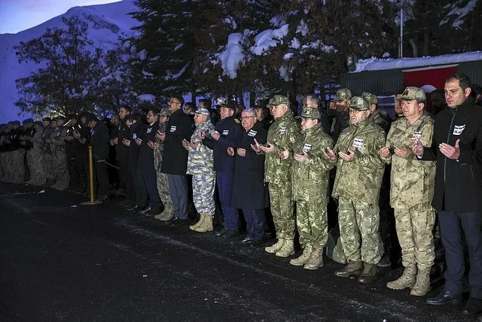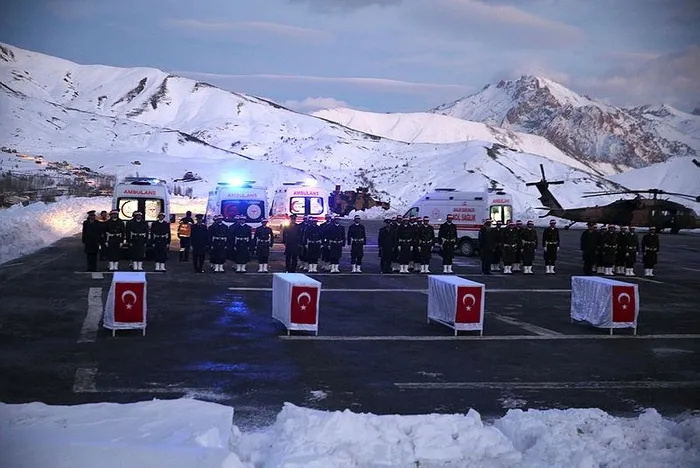 İl Müftüsü İsmail Fakirullahoğlu'nun okuduğu dua sonrası şehitlerin naaşları, silah arkadaşları tarafından helikoptere konularak Yüksekova Selahaddin Eyyubi Havalimanı'na götürüldü.