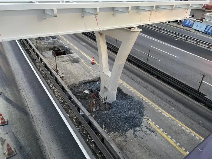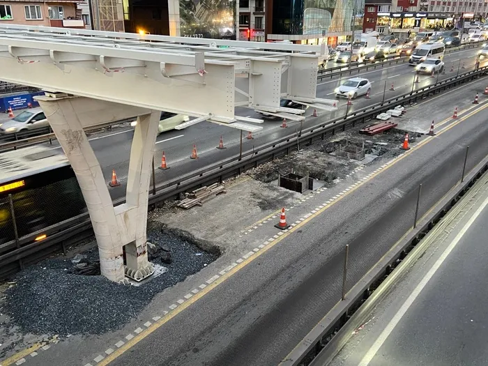 Beşyol Metrobüs Durağı'nda yapımına başlanan yeni üst geçidi tutan ayağın, metrobüs yoluna yapılmasıyla İstanbullu neye uğradığını şaşırdı.