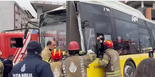 Son dakika: İstanbul D-100 karayolu Esenyurt mevkiinde İETT otobüsü direğe çarptı