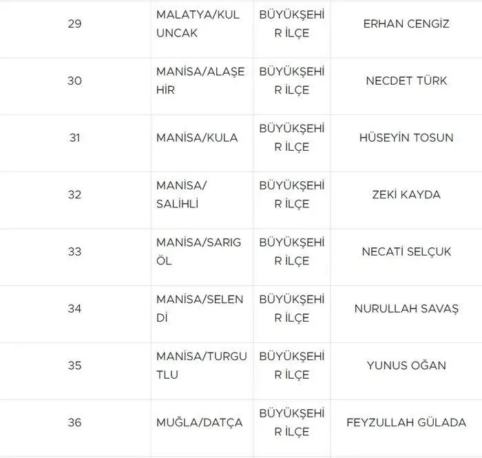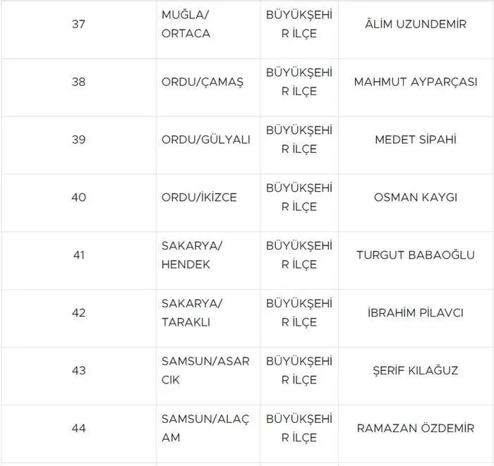 MHP, Afyonkarahisar'da Sezer Küçükkurt, Aksaray'da İrfan Çıtak, Bolu'da İlhan Durak, Gümüşhane'de Vedat Soner Başer, Kırıkkale'de Harun Ulusoy, Kırklareli'nde Derya Bulut, Sivas'ta Reha Kars ve Tokat'ta Mehmet Kemal Yazıcıoğlu'nu il belediye başkan adayı olarak duyurdu.