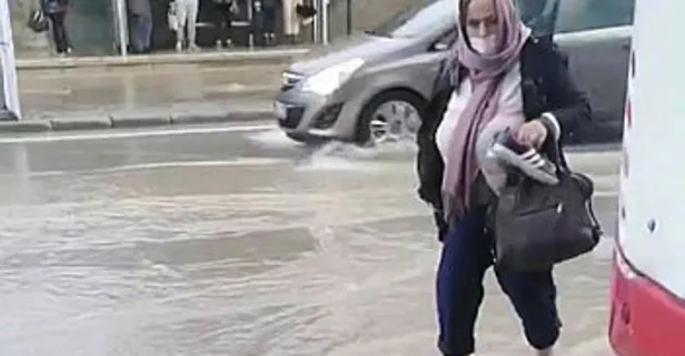 Özellikle Şehit Sami Akbulut Caddesi'nde sağanak sonrası biriken sular hem vatandaşlara, hem araç sürücülerine hem de esnafa zor anlar yaşattı.