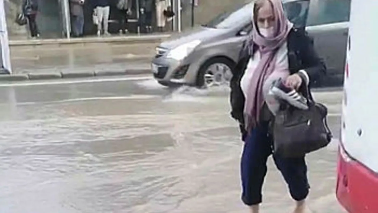 Kentte etkili olan sağanak yağış nedeniyle bazı vatandaşlar çareyi otobüs duraklarına sığınmakta bulurken, bir kadın ise çorabını ve ayakkabısını çıkarıp paçalarını katlayarak göle dönen yolda yürüyüp yoluna devam etti.