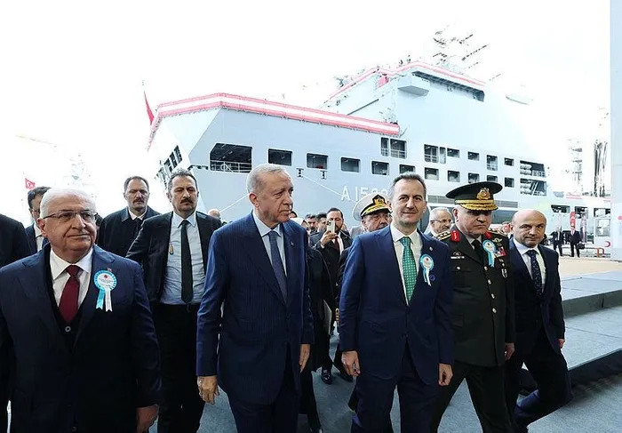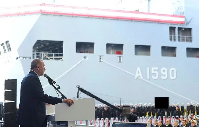 Başkan Recep Tayyip Erdoğan, "Bugün sadece gemilerimizin teslimatıyla yetinmiyoruz, aynı zamanda dünyada elektronik harp kabiliyetine sahip ilk insansız su üstü aracımızı da donanmamıza teslim ediyoruz." dedi.