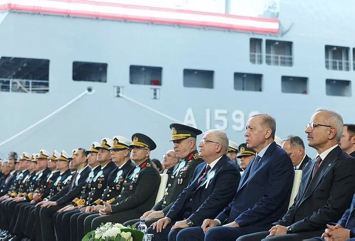 Milli Savunma Bakanı Yaşar Güler, Genelkurmay Başkanı Orgeneral Metin Gürak, Cumhurbaşkanlığı Savunma Sanayii Başkanı Haluk Görgün, Deniz Kuvvetleri Komutanı Oramiral Ercüment Tatlıoğlu'nun da konuşma yaptığı törende, Başkan Erdoğan, bahriyelileri selamladı.