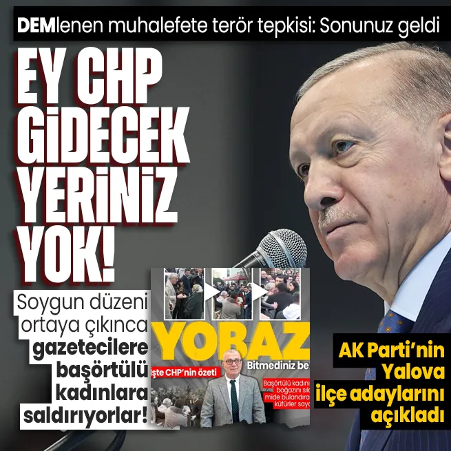 Bu zihniyetin 14 Mayıs seçimlerinde sırf kendilerine oy vermediler diye depremzedelere hakaret savurduklarını söyleyen Erdoğan, "Bugün de aynı kepazeliği, yaşını başını almış kadınlara ve görevini yapmaya çalışan gazetecilere karşı sergiliyorlar. Büyükçekmece'de, İstanbul'da başörtülü bir yaşlı teyzeye saldırıyor ve boğazından adeta gırtlaklıyor. Utan, utan, utan! Hani kadına şiddet yoktu? Anan yaşındaki bir kadına bu şekilde saldırmanın izahı olmaz. Ey CHP, sizin gidecek yeriniz yok ve 31 Mart'ta evet son oyununuzu oynuyorsunuz." dedi.