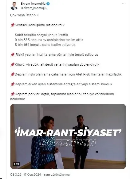 Son dakika: CHP'li İBB Başkanı Ekrem İmamoğlu'nun dönüşüm yalanı! Depremi PR olarak kullanan İmamoğlu 5 yılda 2 bin konut dönüştürmüş