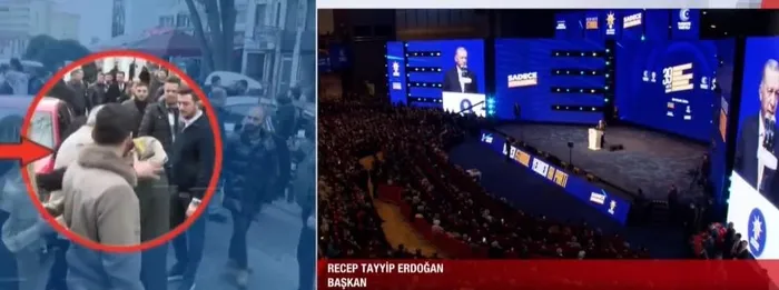 "İşte sizler de görüyorsunuz. Kendileri çalıp, kendileri oynamaya alışkın olanlar, en küçük bir aykırı ses duyduklarında hemen karşılarındakinin gırtlağına sarılmaya başlıyor. Büyükçekmece'de yaşlı bir teyzeye vurdular ve bir de o teyzenin gırtlağına sarıldı. Ya CHP bu. Bunlar ancak bu tür işte gelir basın mensubunu yere yatırırlar, basın mensubunu dövmeye kalkarlar. Hani bunlar basına saygılıydılar. Var mı böyle bir şey? Yok. Gırtlağına sarıldığınız bu millet, size cevabını seçim günü sandıkta verecektir. Galiz küfürler savurduğunuz kadınlarımız 31 Mart günü sandık önlerine geldiğinde size ettiğiniz hakaretlerin hesabını soracaktır. Hem kadın hakları diyeceksiniz hem de milletin ortasında yaşlı bir kadına saldıran edepsizlere hiçbir tepki göstermeyeceksiniz. Hem basın özgürlüğünden dem vuracaksınız hem de görevini yapmaya çalışan gazetecileri militanlarınıza linç ettireceksiniz. Bunun adı sadece ikiyüzlülük değil, aynı zamanda faşizmdir, despotizmdir. CHP, bölücü örgütün uzantılarıyla teşriki mesaisini arttırdıkça şiddete daha meyilli hale gelmiştir."