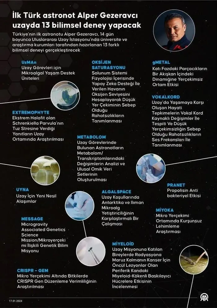 İlk Türk astronot Alper Gezeravcı'nın deneylerini yapacağı Uluslararası Uzay İstasyonu (UUİ), farklı ülkelerden astronotları bir araya getirerek küçük bir Dünya oluştururken evreni anlamak için gerçekleştirilen birçok deneye de ev sahipliği yapıyor. Kasım 2000'den bu yana astronotların yaşadığı ve evrene ışık tutmaya çalıştığı UUİ, saniyede yaklaşık 8 kilometre hızla yörüngede ilerliyor ve bir gün içinde 16 kez Dünya etrafında dönüyor. Birçok ülkenin katkısı bulunan ayrı parçalardan oluşan UUİ'de farklı milletlerden astronotların bir araya gelmesiyle Dünya'daki çeşitlilik yansıtılıyor. Sadece bir ülke tarafından kullanılmayan UUİ, Avrupa, ABD, Rusya, Kanada ve Japonya'nın "müşterek programı" olarak görülüyor.
