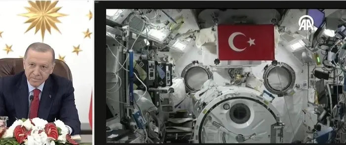 Başkan Erdoğan, ISS'de bilimsel deneylerini sürdüren Türk astronot Alper Gezeravcı ile canlı bağlantı gerçekleştirdi. Erdoğan, "Ülkemiz tarihindeki bu ilk ve çok önemli vazifeyi yerine getirmek için çıktığın yolda sana başarılar diliyorum. Milli Uzay Programımız kapsamında gerçekleştirdiğin bu kritik görevle çocuklarımız ve gençlerimiz başta olmak üzere tüm milletimize ilham kaynağı oldun. Senin seyahatinle birlikte uzay çalışmalarında da artık yeni bir dönemin kapısını araladık" dedi.
