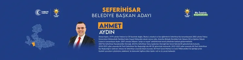 SEFERİHİSAR: AK Parti İzmir Seferhisar Belediye Başkan adayı AHMET AYDIN oldu.