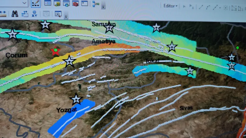 Burada da geçen ay 4.3 büyüklüğünde bir deprem olmuştu. Burada 1598 yılında 6.6 büyüklüğünde bir deprem olduğunu görüyoruz. Yine haritada gerginliğin Çorum'dan ziyade Amasya tarafında daha fazla olduğunu görüyoruz. Amasya tarafı daha gergin ve 1598 yılından beri bir deprem üretmemiş. Bölge itibarıyla baktığımızda Erzurum-Erzincan, Adana, Malatya ve Amasya-Çorum tarafları diğer bölgelere göre yakın tehlike altında gözüküyor" diye konuştu.