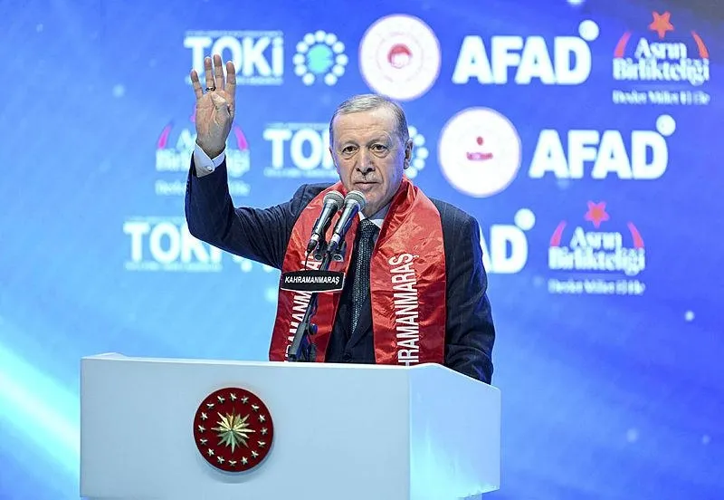 Erdoğan, Kahramanmaraş Sütçü İmam Üniversitesi Yunus Emre Kongre Merkezi'nde Deprem Konutları Kura ve Anahtar Teslim Töreni'ne katıldı.
