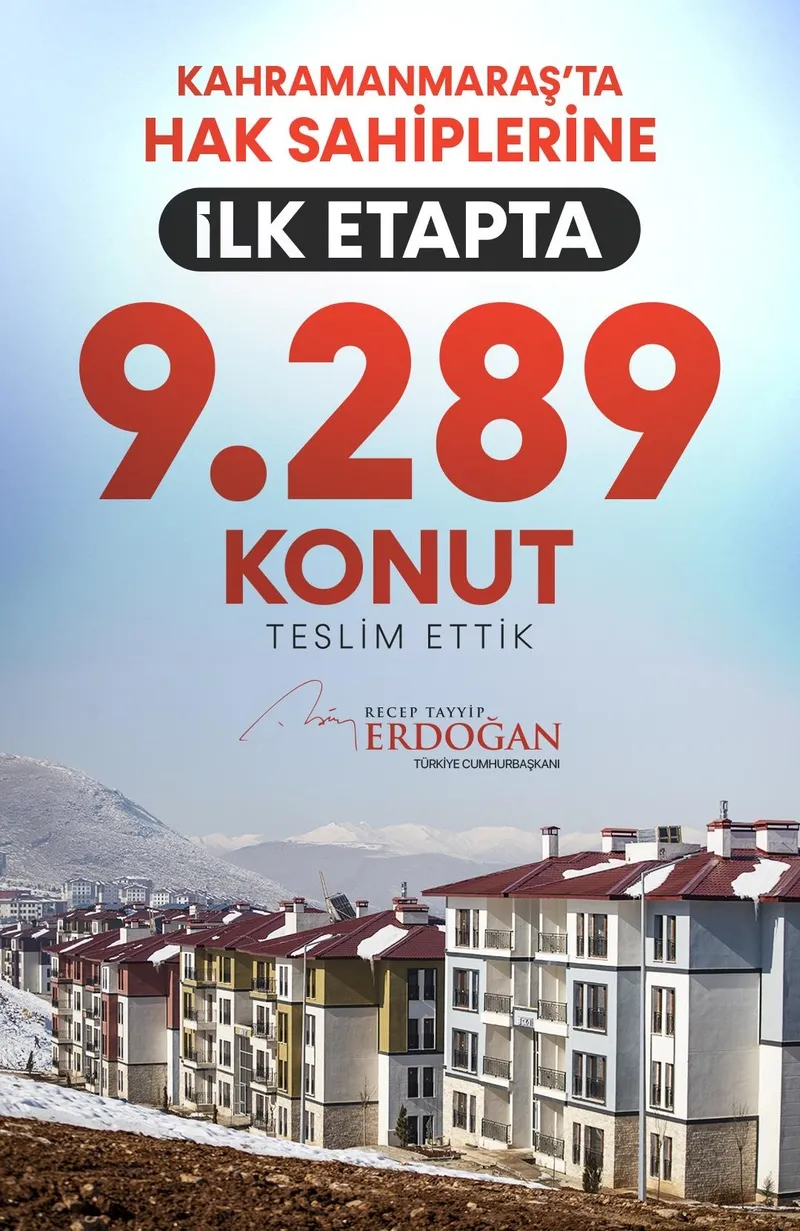 Öte yandan Recep Tayyip Erdoğan, 6 Şubat'ta meydana gelen Kahramanmaraş merkezli depremlerde evi yıkılan, kullanılamaz hale gelen her bir vatandaşı güvenli bir yuva sahibi yapana kadar çalışmaların devam edeceğini bildirdi.