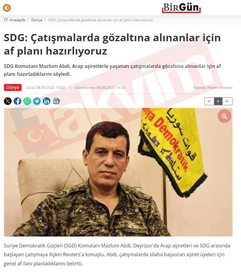 CHP fondaşı paçavra terör örgütü PKK'nın sözcülüğüne yapmaktan geri durmuyor. Örgütün Suriye ayağında yer alan ve sözde müttefik ABD tarafından palazlandırılan SDG'nin haberleri tam sayfa veriliyor. Elebaşı Abdi'ye 'komutan' güzellemeleri yapılıyor.