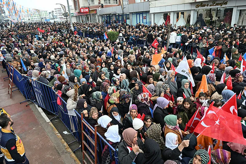 Erdoğan daha sonra alandakilere, "Şimdi hazır mısınız? Öyle bir seslenelim ki buradan bütün çevre duysun. Tek millet, tek bayrak, tek vatan, tek devlet, bir olacağız, iri olacağız, diri olacağız, kardeş olacağız, hep beraber 31 Mart'ta tüm sandıkları patlatacağız. İnşallah 31 Mart gecesi sandıklardan bu müjdeyi bekliyoruz." diye seslendi.