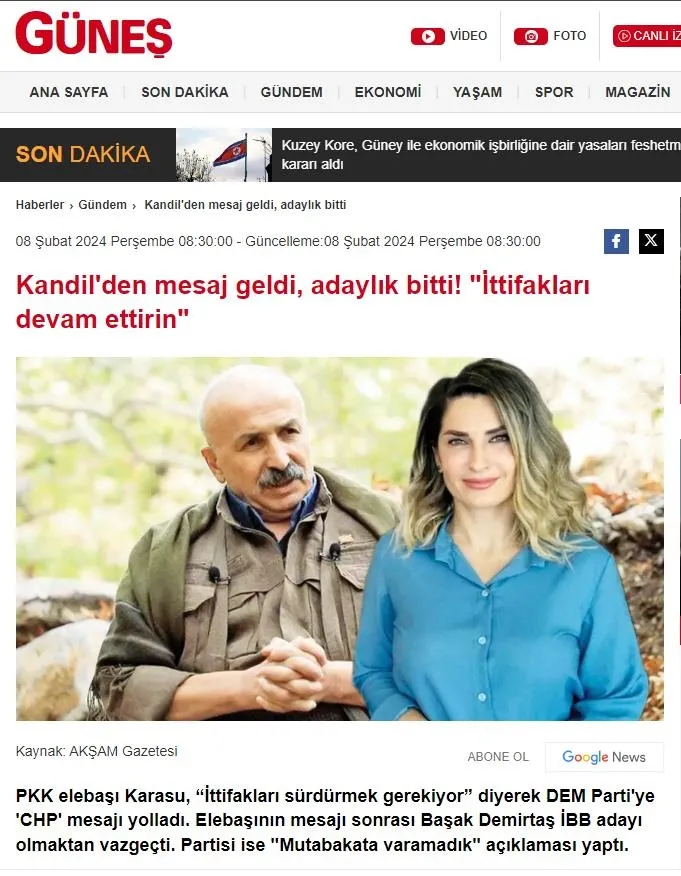 Gazetenin internet sitesinde yer alan haberde de "Kandil'den mesaj geldi, adaylık bitti! "İttifakları devam ettirin" başlığına yer verildi.