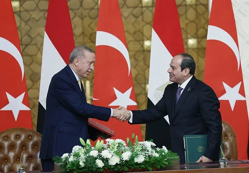 Mısır Cumhurbaşkanı Sisi, Erdoğan'ın ülkesini on yılı aşkın bir süre sonra ziyaret etmesinden duyduğu memnuniyeti dile getirerek, "İki ülke arasında yeni bir sayfa açıyoruz." ifadelerini kullandı.